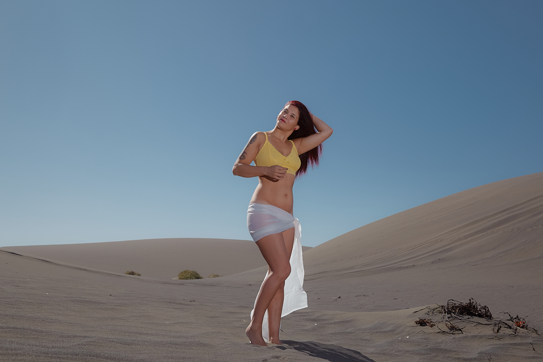 Con un paisaje que recuerda al desierto del Sahara resultó perfecto para una sesión de desnudo artístico.